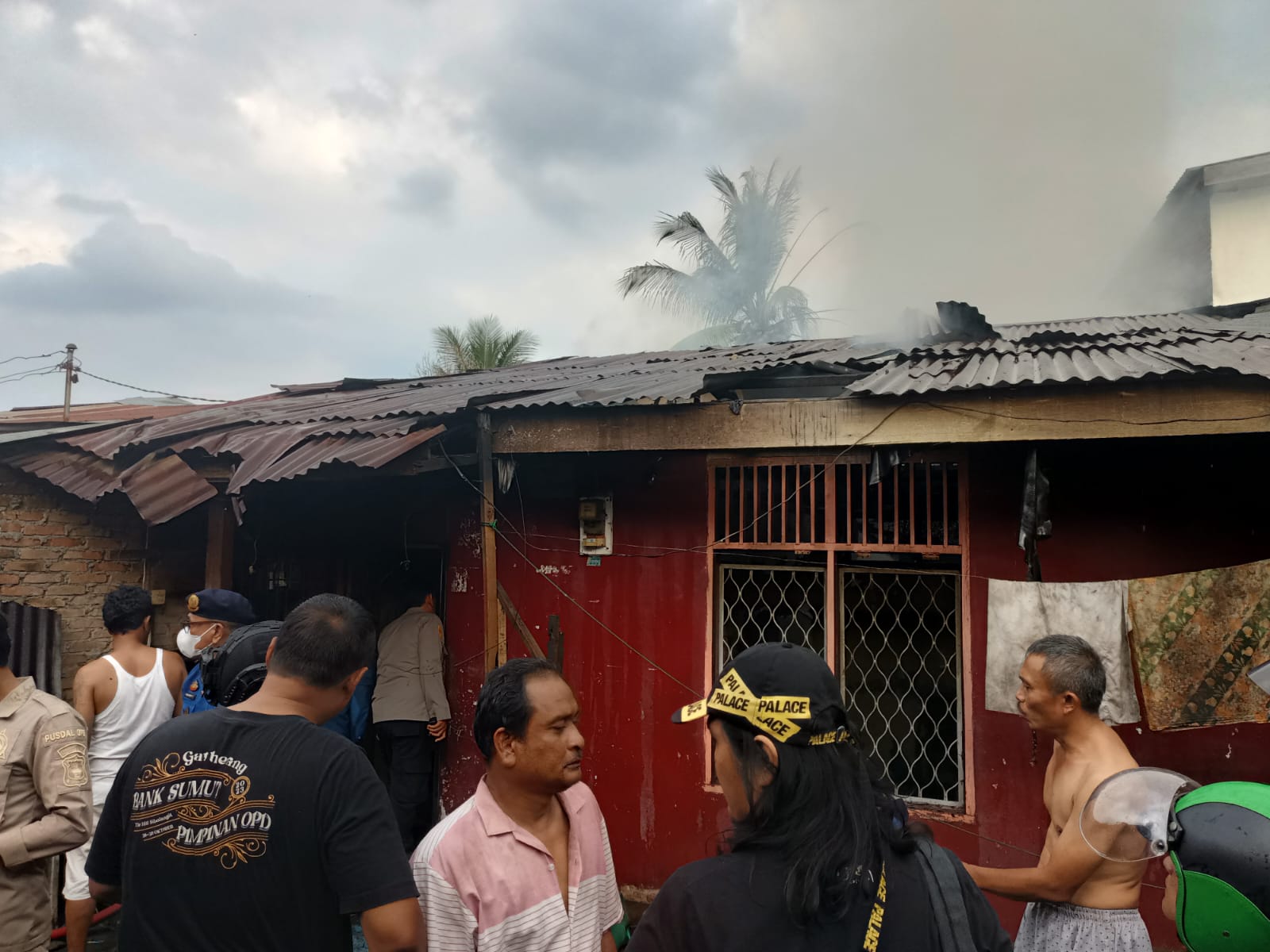Satu unit rumah semi permanen milik Todos Simanungkalit (53) di Jalan Pane, Kelurahan Tomuan, Siantar Timur, terbakar hebat. Api berhasil dipadamkan setelah tiga unit mobil damkar dikerahkan, Kamis sore (5/2/2026) sekitar pukul 17.00 WIB.