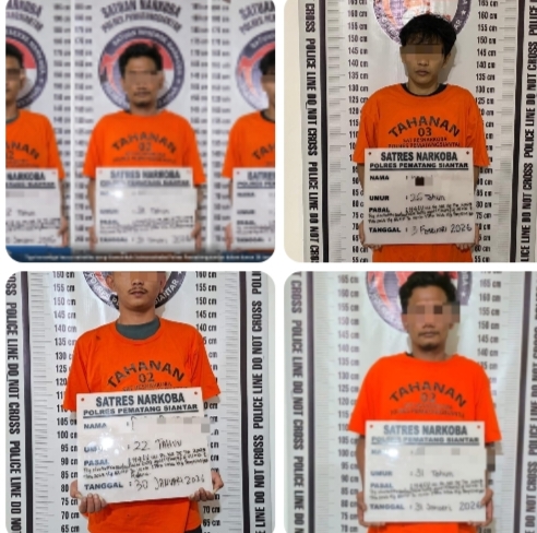 Penangkapan pertama dilakukan pada Jumat (30/01/2026) malam di Jalan Kasti, Kelurahan Banjar, Siantar Barat. Seorang pria berinisial DP (22) ditangkap saat berada di atas sepeda motor. Dari tangannya ditemukan 1 paket sabu berat bruto 1,31 gram, satu unit iPhone, serta uang Rp150 ribu. Ia mengaku memperoleh barang haram tersebut dari pria berinisial DA yang kini masih dalam pencarian.