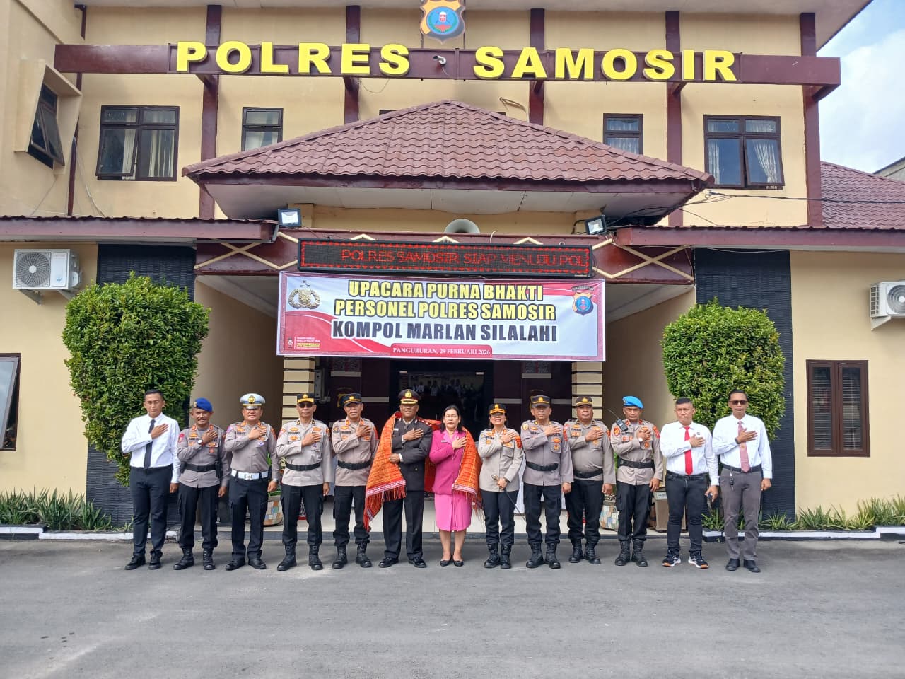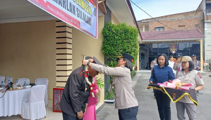 Polres Samosir laksanakan upacara Pelepasan Wisuda Purna Bhakti, Kompol (Purn) Marlan Silalahi resmi pensiun