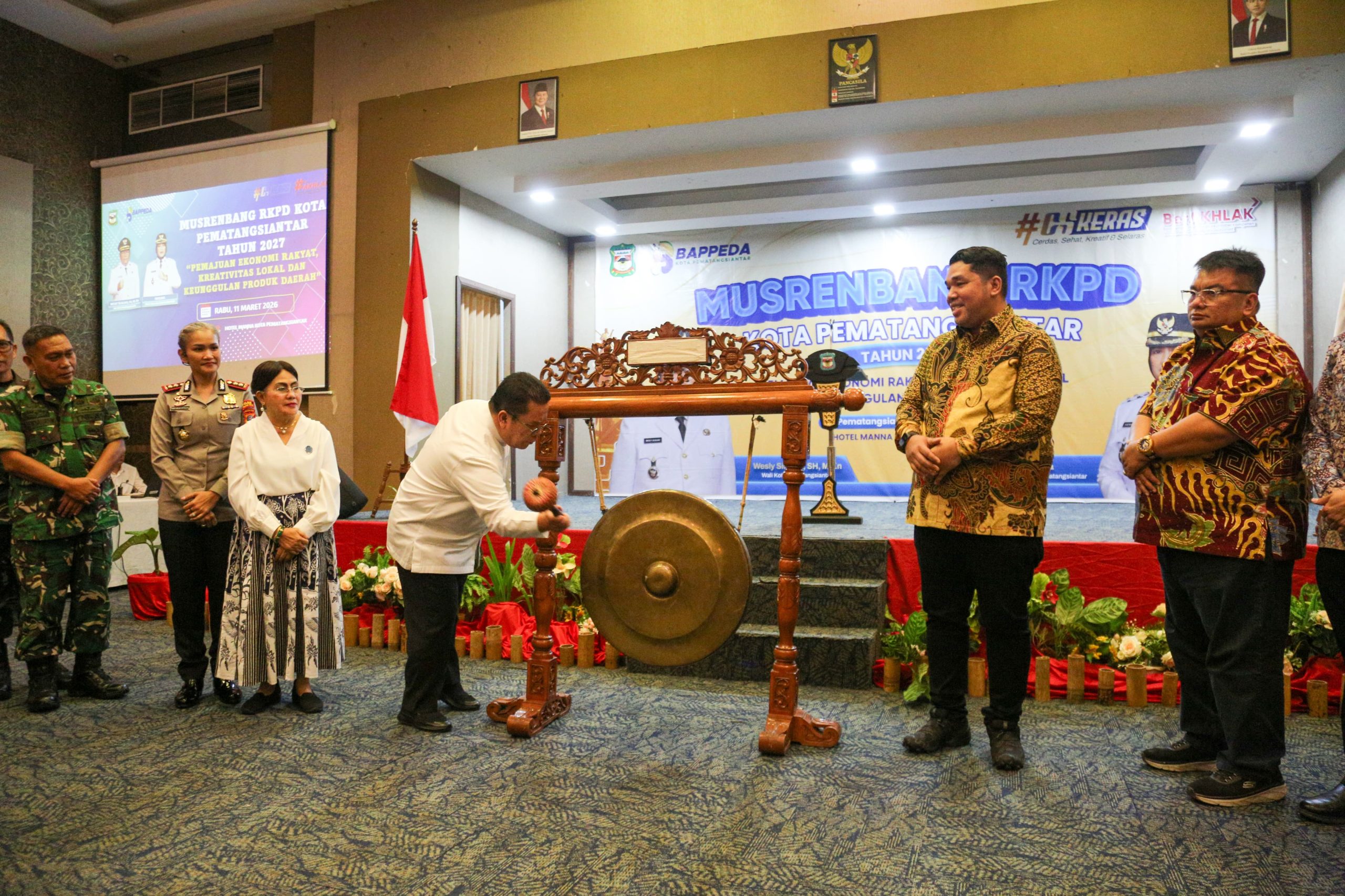 Musrenbang RKPD Kota Pematangsiantar Tahun 2025 dibuka dengan pemukulan gong oleh Wesly, didampingi Kepala Bappelitbang Sumut Dikky Anugerah Panjaitan, Ketua TP PKK Ny Liswati Wesly Silalahi, beserta Unsur Forkopimda atau yang mewakili.