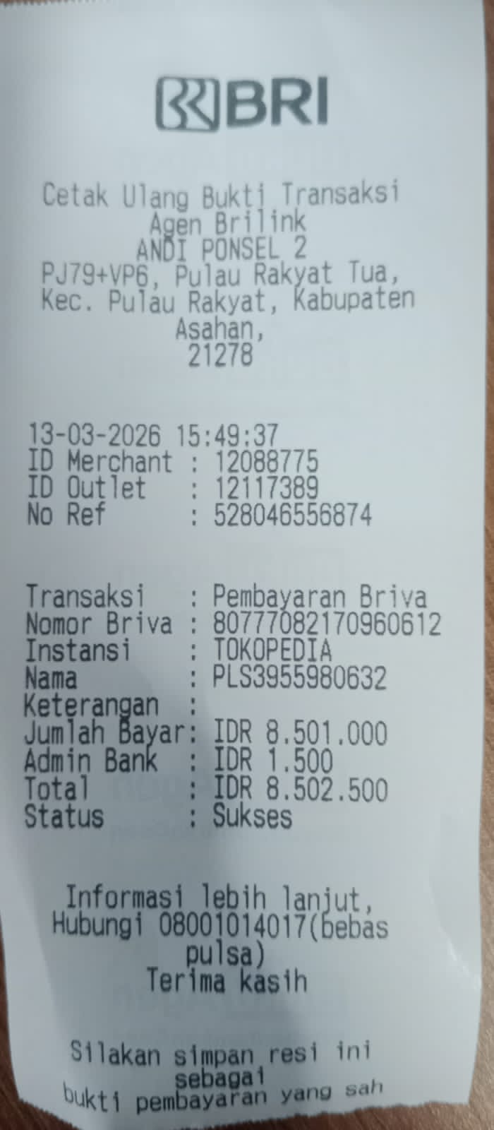 Sementara itu Agen BRI Ling Andi Ponsel membenarkan uang sebesar Rp 8,5 juta sudah transaksi melalui BRIVA ke TOKOPEDIA sebesar Rp 85 juta, namun korban belum menyerahkan uangnya ke kasir BRILink.
