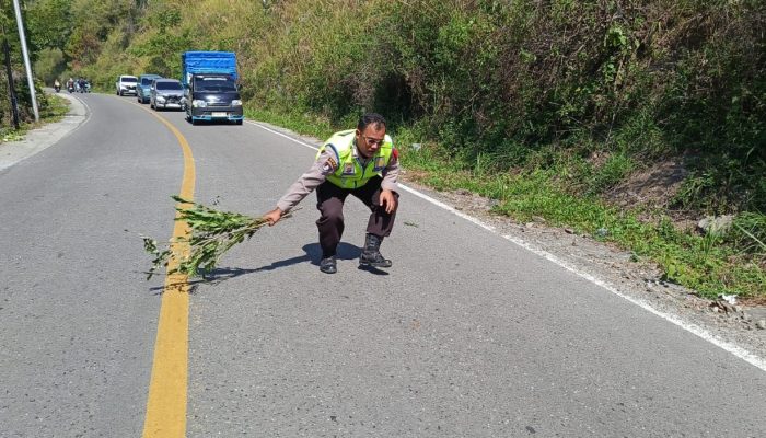 Tidak hanya itu, BRIPKA Vandu P. Marpaung bersama pengemudi becak turut membersihkan pecahan kaca di badan jalan menggunakan alat seadanya, seperti ranting pohon, guna memastikan keselamatan pengguna jalan lainnya.