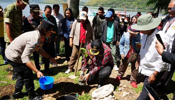 Pemerintah Kabupaten Samosir bersama Yayasan Pusuk Buhit melakukan aksi nyata pelestarian lingkungan dengan menebar 1.000 bibit ikan di Danau Toba serta menanam 1.000 pohon di kawasan Waterfront City (WFC) Pangururan dan Pusuk Buhit, Jumat (10/4/2026).