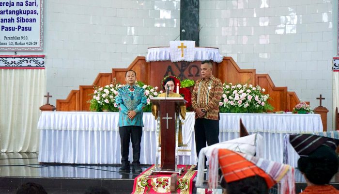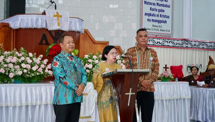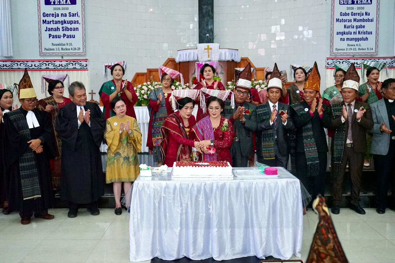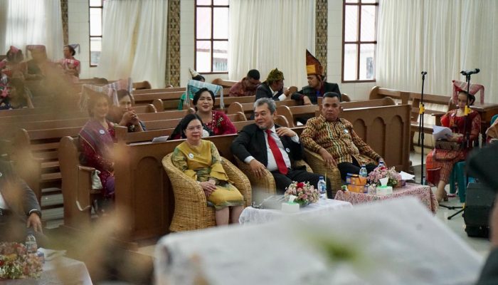 Wali Kota Pematangsiantar Wesly Silalahi SH MKn diwakili Staf Ahli Bidang Pemerintahan Drs Happy Oikumenis Daely menghadiri acara Pesta Jubileum GKPS Jalan Sudirman, Minggu (12/04/2026).