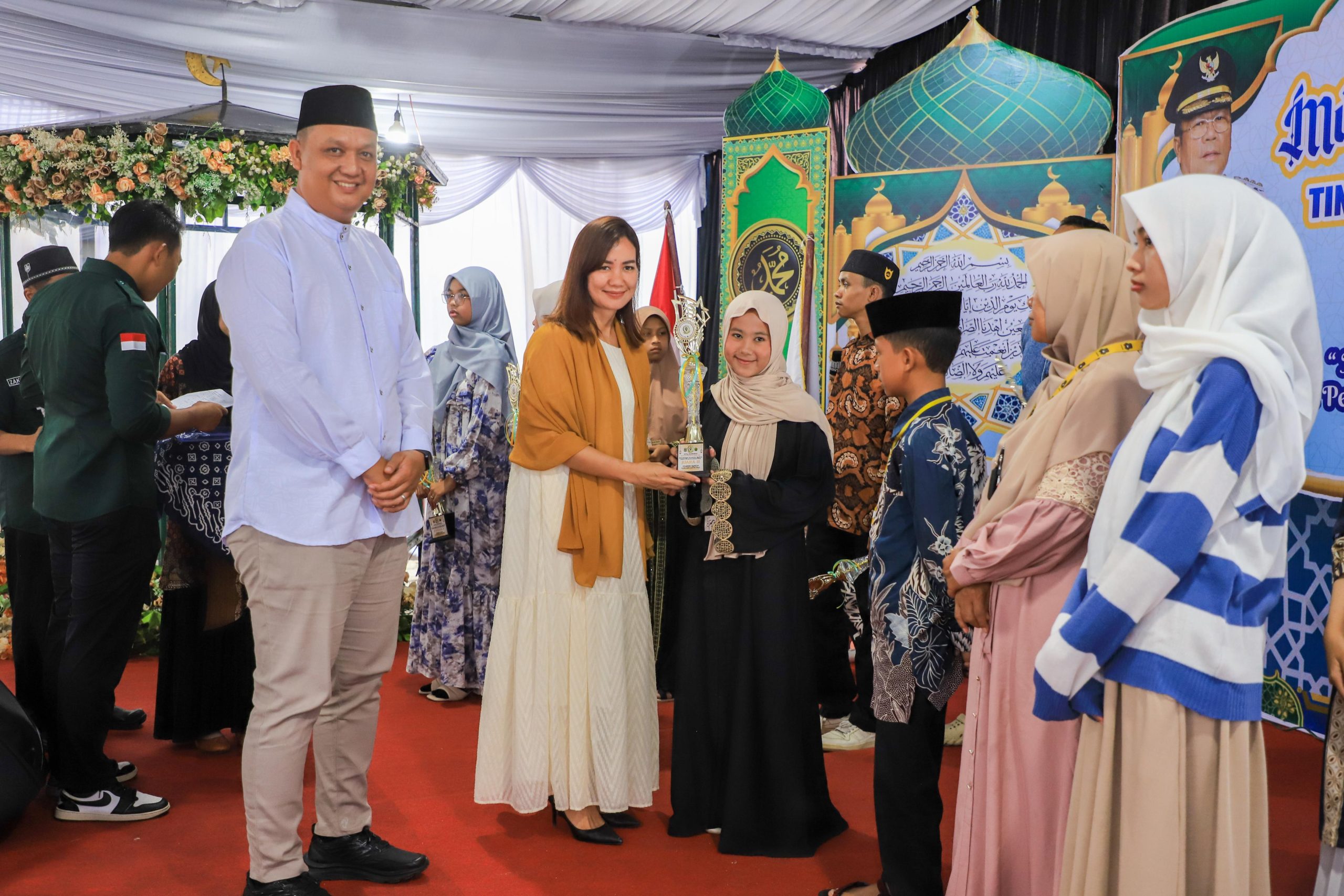 Asisten Perekonomian dan Pembangunan Zainal Siahaan mewakili Wali Kota Wesly Silalahi serahkan piala juara umum MTQN ke-55 Tingkat Kecamatan Siantar Utara kepada Kelurahan Martoba, Selasa 14 April 2026 di halaman Kantor Camat Siantar Utara.