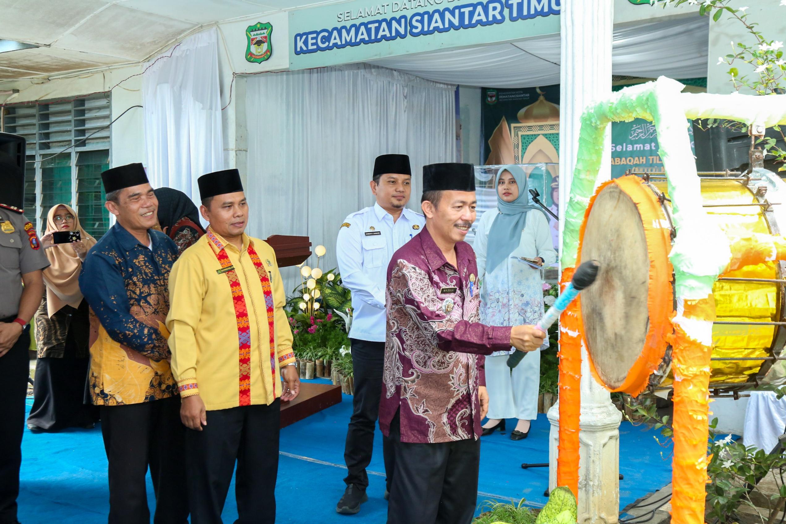 Kadis Pariwisata sekaligus Ketua LPTQ Kota Pematangsiantar Hamzah Fanshuri Damanik mewakili Wali Kota Wesly Silalahi buka MTQN ke-58 Tingkat Kecamatan Siantar Timur di halaman Kantor Camat, Rabu 15 April 2026 pagi.