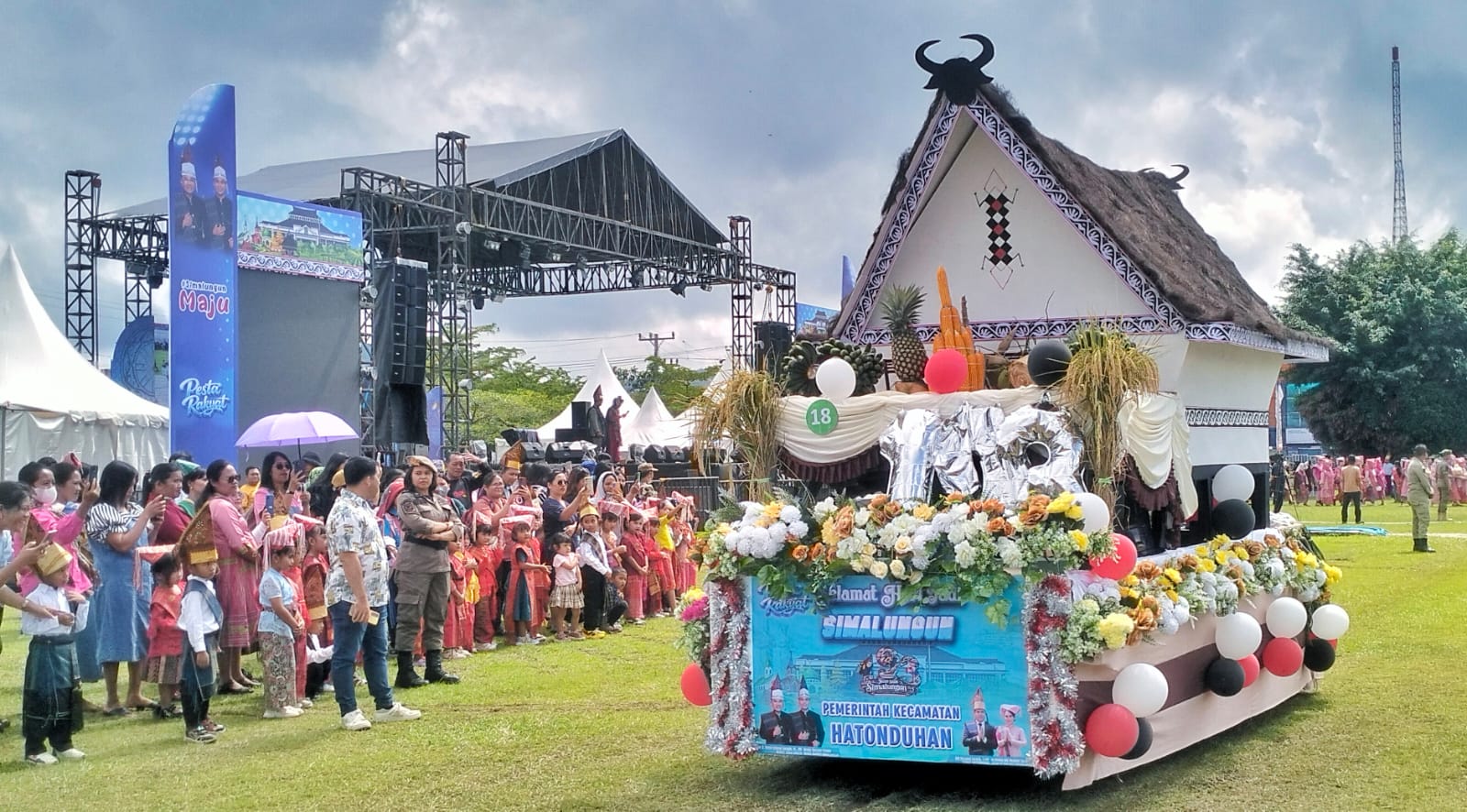 Panggung utama diisi tarian 100 anak PAUD, Tor-tor Balang Sahua, Tor-tor Dihar Simalungun, paduan suara dan tarian ibu-ibu PKK. Sebanyak 20 stand UMKM tampilkan potensi ekonomi kreatif masyarakat.
