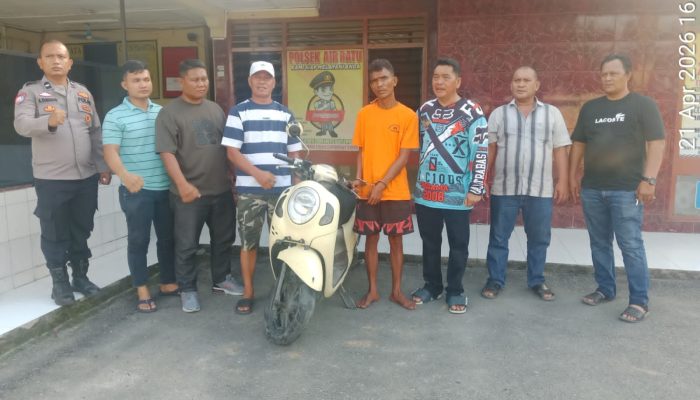 “Setelah pelaku berhasil membawa sepeda motorrnya, korban yang tidak berhasil mencari, membuat laporan ke Polsek Air Batu, dan polisipun langsung melakukan lidik, dan akhirnya berhasil menangkap pelaku di daerah Siamporik, Kecamatan Kualuh Selatan, Labuhanbatu”, terang Ipda Ropii.