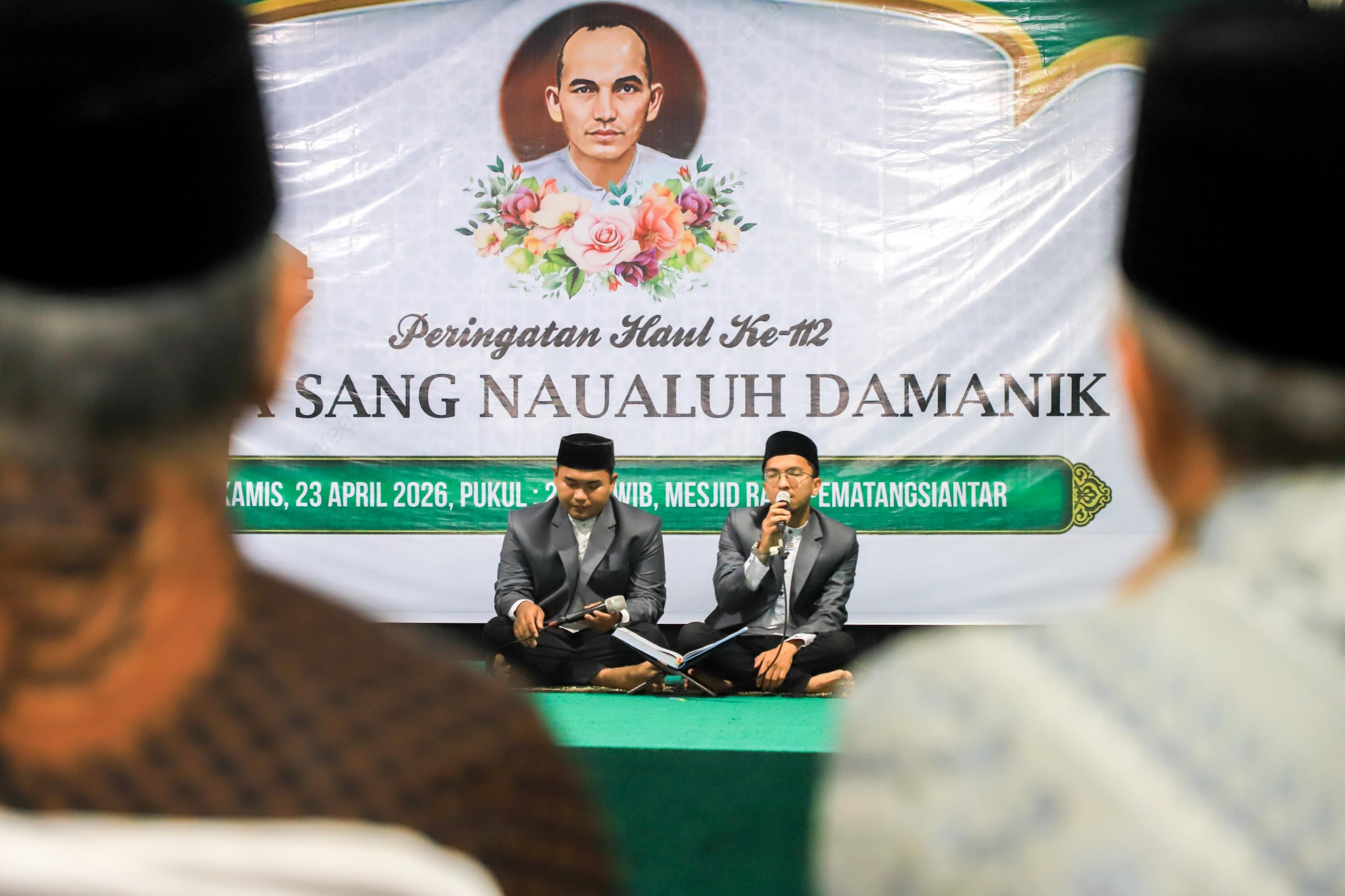Haul ke-112 Raja Sang Naualuh Damanik untuk pertama kali digelar di Masjid Raya, Jalan Masjid Kelurahan Timbang Galung, Kecamatan Siantar Barat, Kamis 23 April 2026 malam.