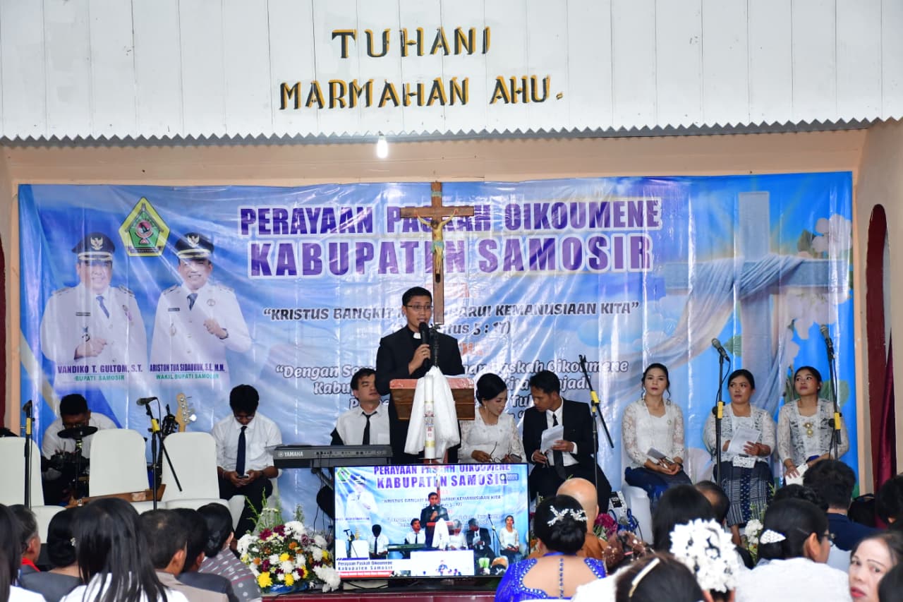 Perayaan Paskah Oikoumene Kabupaten Samosir 2026 digelar khidmat di Gereja Katolik St. Clara Silimapuluh, Desa Parsaoran, Kecamatan Sitio-tio, Rabu 23 April 2026.