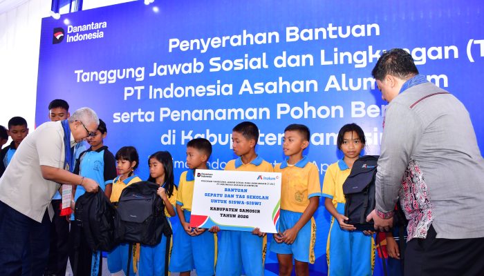 PT Indonesia Asahan Aluminium menyalurkan bantuan sosial, pendidikan, lingkungan, dan pemberdayaan ekonomi di Kabupaten Samosir. Penyerahan dilakukan bersama Pemkab Samosir dan dihadiri Bupati Vandiko T. Gultom, Wakil Bupati, serta jajaran direksi Inalum, Jumat (24/4/2026)