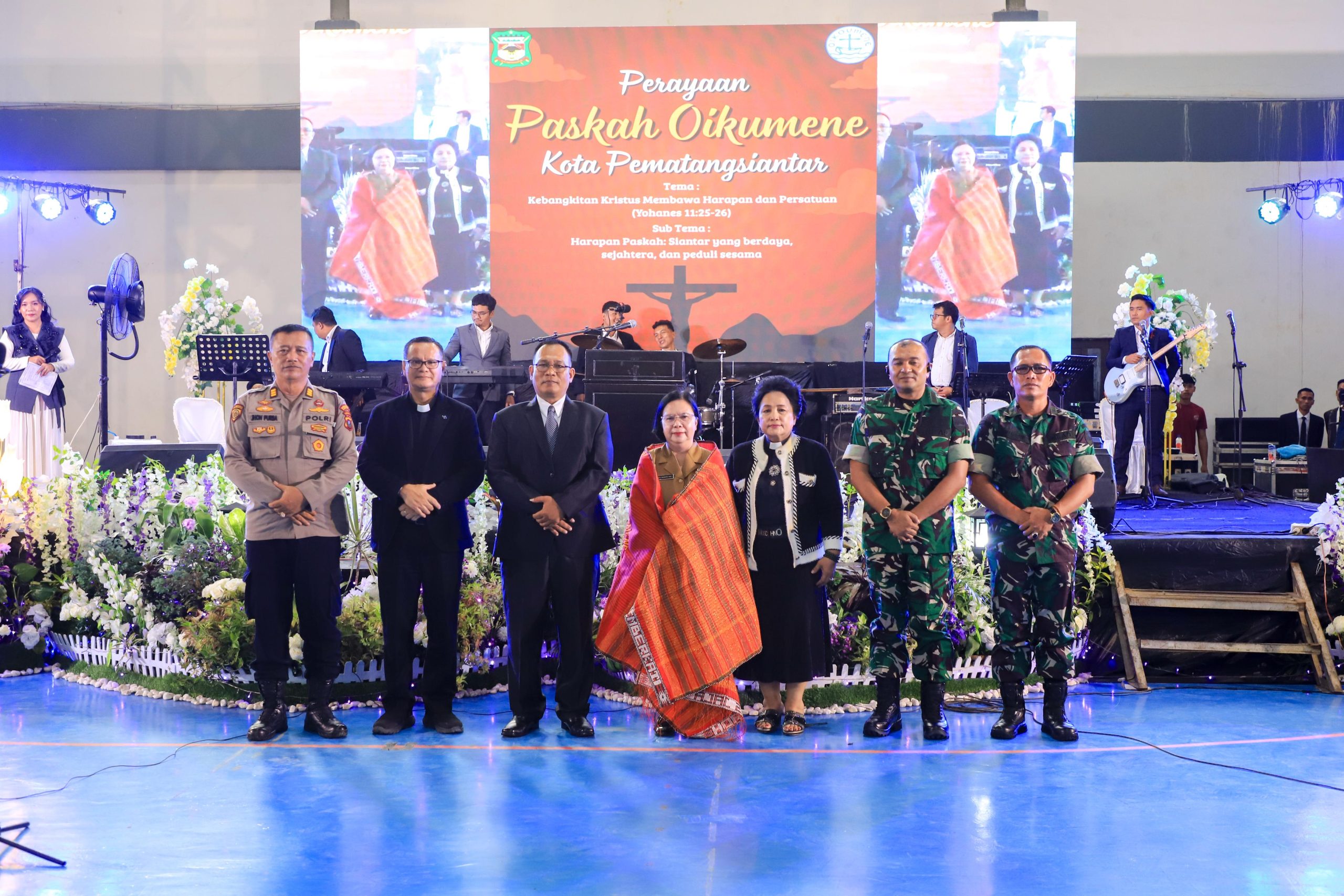 Wali Kota Pematangsiantar Wesly Silalahi diwakili Staf Ahli Bidang Pemerintahan Dra. Happy Oikumenis Daely hadiri Perayaan Paskah Oikumene Kota Pematangsiantar 2026 di GOR Lantai 4 Suzuya Merdeka Mall, Jalan Merdeka, Kecamatan Siantar Timur, Selasa 28 April 2026 sore.