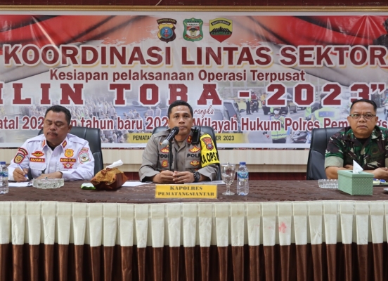Kapolres Pematang Siantar AKBP Yogen Heroes Baruno SH, SIK pimpin pelaksanaan rapat koordinasi lintas sektoral kesiapan pelaksanaan operasi terpusat lilin toba 2023 dalam rangka pengamanan natal 2023 dan tahun baru 2024.