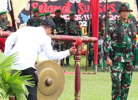 TMMD resmi dengan pemukulan Gong oleh Bupati Simalungun, serta penyerahan peralatan TMMD Secara Simbolis berupa Sekop, cangkul, plongki kepada perwakilan TMMD.