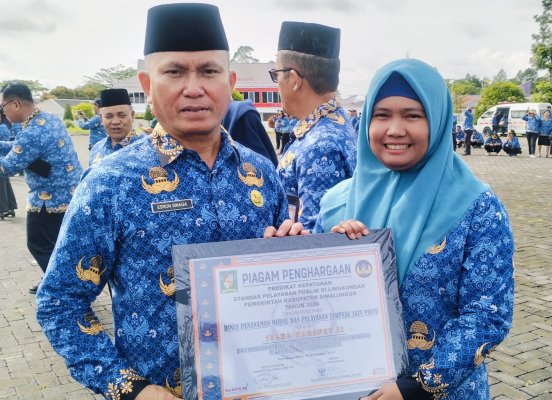 Selain itu, dalam kesempatan ini juga di berikan piagam penghargaan Predikat kepatuhan Standar Pelayanan Publik di Lingkungan Pemkab Simalungun hasil penilaian penyelenggaraan pelayanan publik Kabupaten Simalungun Tahun 2024 kepada sejumlah Perangkat Daerah di lingkungan Pemkab Simalungun.