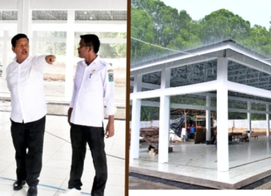 Dilokasi pembangunan pasar tersebut, Bupati melakukan pengecekan setiap sudut dari bangunan dengan teliti untuk memastikan semuanya berjalan sesuai rencana bangunan.