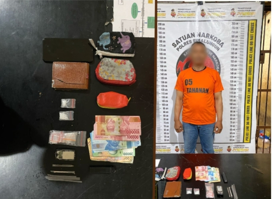 Satuan Reserse Narkoba Polres Simalungun berhasil mengungkap kasus peredaran narkoba dengan menangkap seorang pengedar sabu-sabu di Hotel Pelangi, Huta I Kampung Pompa, Nagori Perlanaan, Kecamatan Bandar, Kabupaten Simalungun, Sabtu (15/2/2025) malam.