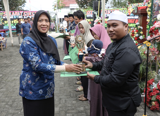 Dalam kesempatan tersebut, Herlina menyerahkan trofi kepada para juara. Termasuk kepada Kelurahan Sumber Jaya yang menjadi juara umum.