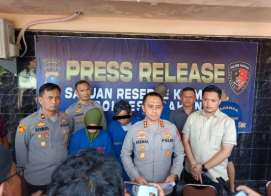 Kami ada mengamankan dua orang tersangka dalam persetubuhan terhadap anak di bawah umur. Tersangka adalah ayah tiri dan ibu kandung korban,” ujar Kapolres Asahan, AKBP Afdhal Junaidi, sekira pukul 16:30 WIB