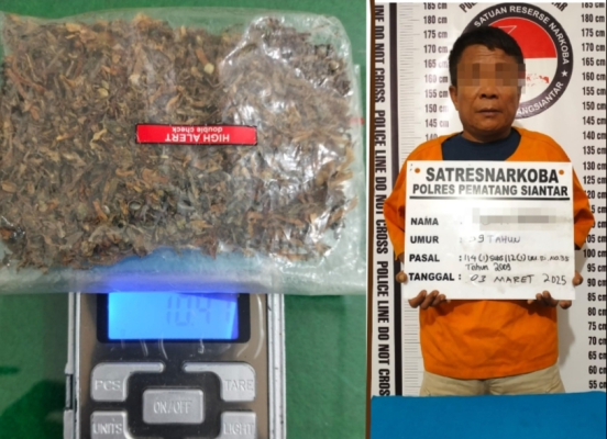 Polres Pematangsiantar Melalui Satres Narkoba berhasil menangkap “IS” (58) yang menyimpan dan memilki narkotika jenis ganja dirumahnya yang terletak di Jalan Jalan Dalil Tani, Kelurahan Tomuan Kecamatan Siantar Timur Kota Pematangsiantar, pada Senin (3/3/2025).