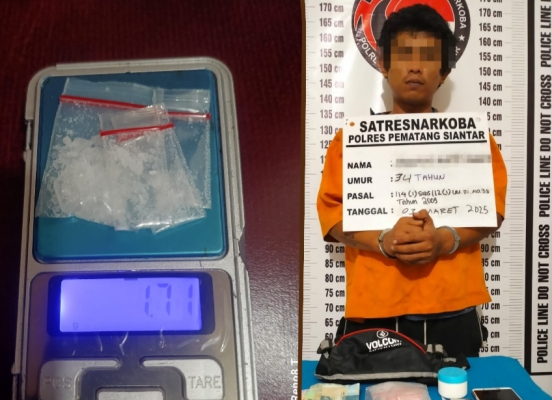 Kapolres Pematangsiantar AKBP Yogen Heroes Baruno SH. SIK melalui Kasat Resnarkoba AKP JH. Pardede SH mengatakan diduga pelaku itu berinisial “MSPS” (34) warga Dolok Tomuan, Kecamatan Dolok Panribuan, Kabupaten Simalungun.