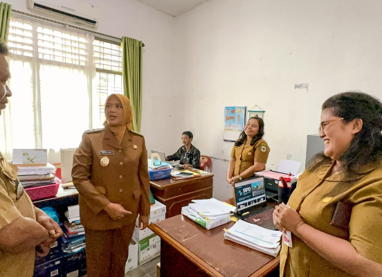 Ditemani Masa Rahmat Zebua, Herlina berkeliling Kantor Camat Siantar Timur, meninjau setiap ruangan, dan menyapa para pegawai.