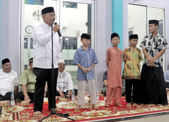 Safari Ramadhan di Masjid Al-Ikhlas Kompleks Perumnas Kelurahan Kerasaan I, Bupati Beriteraksi dengan Anak-anak