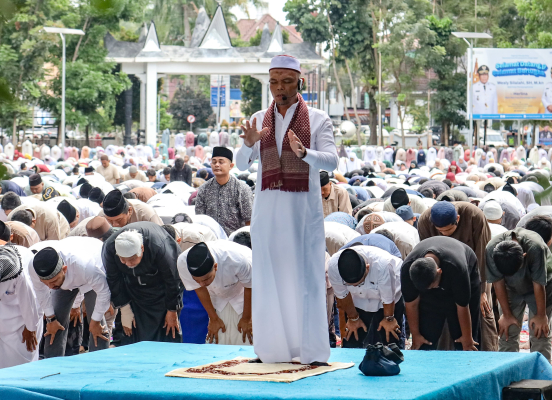Wakil Wali Kota Pematangsiantar (Wawako) Herlina dan keluarga bersama ribuan umat Islam mengikuti sholat Hari Raya Idul Fitri 1446 H di Lapangan Adam Malik, Senin (31/03/2025) pagi. Sholat Idul Fitri dengan Khatib Drs HM Ali Lubis dan Imam H Awal Pinasrun SPd, berjalan lancar.