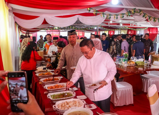 Suasana tampak akrab dan penuh rasa kekeluargaan. Para tamu menikmati makan siang bersama.