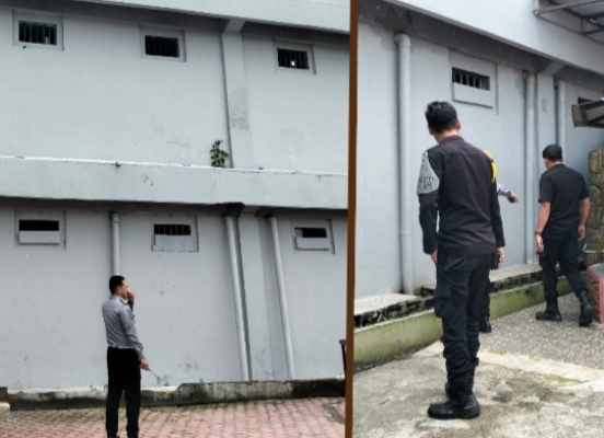 Kegiatan meninjau bangunan blok hunian maupun tembok branggang guna meminimalisir terjadinya gangguan keamanan dan ketertiban di lingkungan Lapas Narkotika kelas IIA Pematangsiantar.
