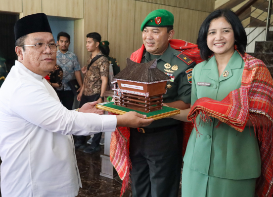 Hadiri Tradisi Pelepasan Danrem 022/PT Brigjen Tagor Rio Pasaribu, Wali Kota Wesly Silalahi Berikan Cendramata, “Miniatur Rumah Adat Simalungun”