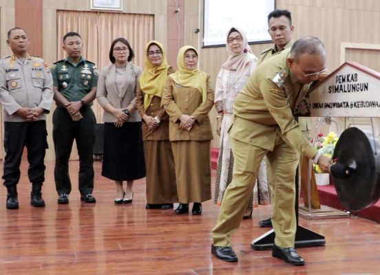 Pembukaan konsultasi publik tersebut diawali dengan penampilan tor-tor sombah dan menyanyikan lagu kebangsaan Indonesia Raya dan ditandai dengan pemukulan Gong oleh Bupati Simalungun, berlangsung di Balei Harunghuan Djabanten Damanik, Kantor Bupati Simalungun, Pematang Raya, Sumut  Selasa, (22/4/2025).