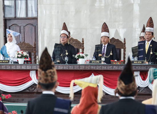Wali Kota Pematangsiantar Wesly Silalahi SH MKn didampingi Ketua TP PKK Kota Pematangsiantar Ny Liswati Wesly Silalahi bersama Wakil Wali Kota Herlina didampingi suami Bahrum Sumantri, dan sejumlah unsur Forkopimda menghadiri Rapat Paripurna Istimewa Peringatan Hari Jadi ke-154 Kota Pematangsiantar, di Ruang Sidang DPRD Pematangsiantar, Kamis (24/4/2025) pagi.