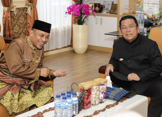 Wali Kota Pematangsiantar Wesly Silalahi SH MKn bersama Ketua TP PKK Ny Liswati Wesly Silalahi menyambut kehadiran Wakil Bupati Bengkalis H Bagus Santoso bersama istri. Penyambutan sekaligus pertemuan digelar di lantai II Kantor Wali Kota Pematansiantar, Jalan Merdeka, Sabtu (26/04/2025) siang.