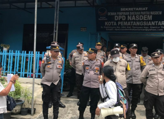 Massa aksi bergerak dari depan Universitas Simalungun (USI) dengan melakukan konvoi menuju kantor DPD NasDem. Setibanya di lokasi, mereka menggelar orasi dan membentangkan spanduk bertuliskan “Siantar Darurat Demokrasi,” dengan korban pemukulan turut hadir membawa spanduk tersebut.
