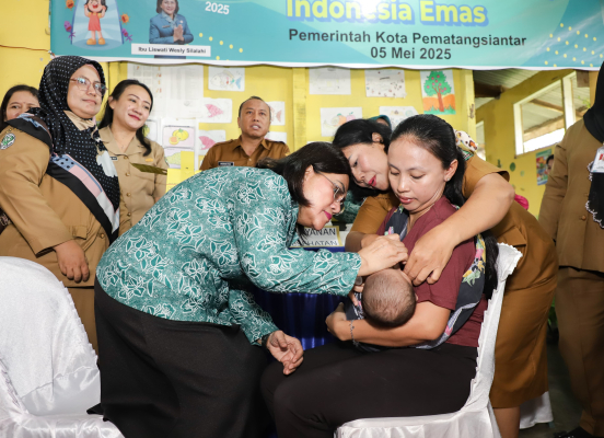 Ketua Tim Pembina Posyandu Kota Pematangsiantar Ny Liswati Wesly Silalahi meneteskan langsung vaksin polio kepada bayi. Hal itu dilakukan Ny Liswati di Posyandu B/IV/04 Tozai Baru, Jalan Taurus Perumahan Tozai Baru Kelurahan Bah Kapul Kecamatan Siantar Sitalasari, Senin (05/05/2025) pagi. Kehadiran Ny Liswati tersebut sekaligus untuk memastikan pelaksanaan Pekan Imunisasi Dunia sekaligus mengajak masyarakat aktif mendukung program kesehatan anak.