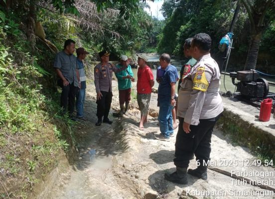 Kepolisian Sektor (Polsek) Tanah Jawa, Polres Simalungun, melakukan penghentian operasional galian C milik James Sinaga yang berlokasi di Huta Dolok Tolong, Nagori Marubun Jaya, Kecamatan Tanah Jawa, Kabupaten Simalungun, Selasa (6/5/2025).