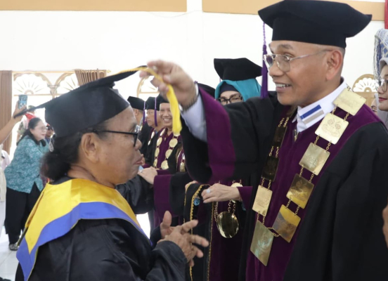 Bupati Simalungun, Anton Achmad Saragih bersama Ketua TP PKK Ny Darmawati Anton Achmad Saragih melakukan wisuda terhadap bagi peserta sekolah Lanjut Usia (Lansia) Tangguh Nagori Siantar Estate Kecamatan Siantar Standard 1 (S-1).