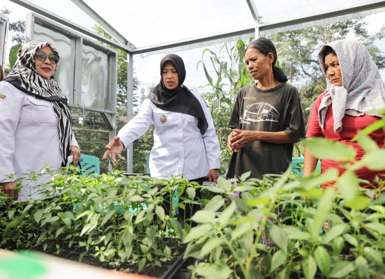 Wakil Wali Kota Pematangsiantar Herlina mengunjungi dan memonitoring program Pekarangan Pangan Lestari Kelompok Wanita Tani (KWT) Mitra Jaya, di Kelurahan Sumber Jaya Kecamatan Siantar Martoba, Rabu (21/05/2025) pagi.