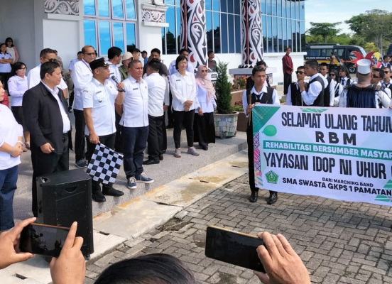Bupati Simalungun diwakili Wakil Bupati, Benny Gusman Sinaga melepas rombongan tim Rehabilitasi Bersumberdaya Masyarakat (RBM) GKPS dan Difabel untuk mengikuti peringatan hari jadi RBM ke-10 yang akan berlangsung di Bulu Pange, Kelurahan Merek Raya, Kecamatan Raya.