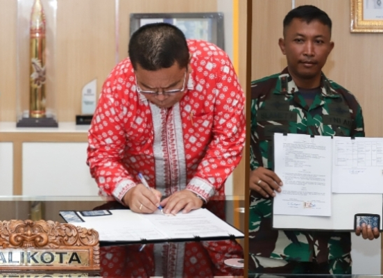 Wali Kota Pematangsiantar Wesly Silalahi SH MKn dan Dandim 0207/Simalungun Letkol Inf Slamet Faojan MHan menandatangani Nota Kesepakatan Pemerintah Kota (Pemko) Pematangsiantar dengan Komando Distrik Militer (Kodim) 0207/Simalungun tentang Pelaksanaan Kerja Sama Operasionalisasi Kegiatan Karya Bhakti TNI di Wilayah Kota Pematangsiantar (Swakelola Tipe II) Tahun Anggaran (TA) 2025. Penandatanganan berlangsung di Kantor Wali Kota Pematangsiantar, Kamis (05/06/2025) siang.