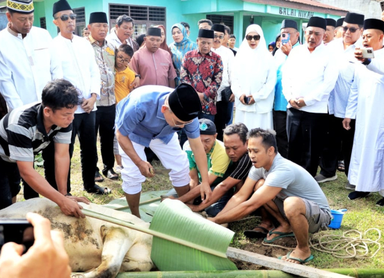 “Dan saya bersama istri hadir disini untuk melaksanakan penyembelihan hewan qurban, dari masyarakat serta juga dari keluarga,”ujar Bupati.