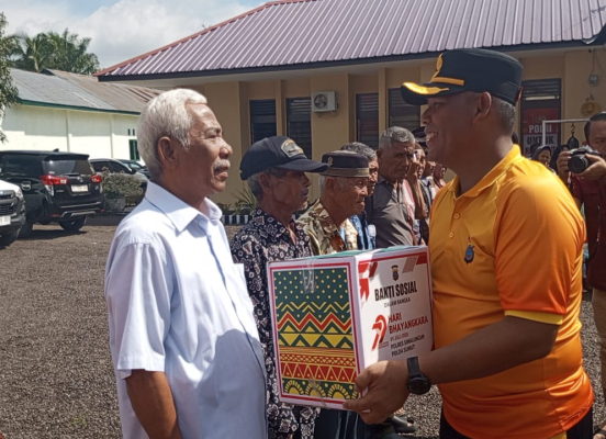 Polsek Tanah Jawa memberikan bantuan sosial berupa sembako kepada masyarakat Balimbingan di markas polsek tanah jawa Sabtu, (21/6/2025).