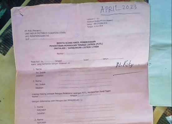 PLN Cabang Tanah Jawa mencabut meteran listrik milik warga bernama Simson Simbolon, dengan alasan, karena nama dan ID pelanggan tidak terdaftar di sistem PLN.