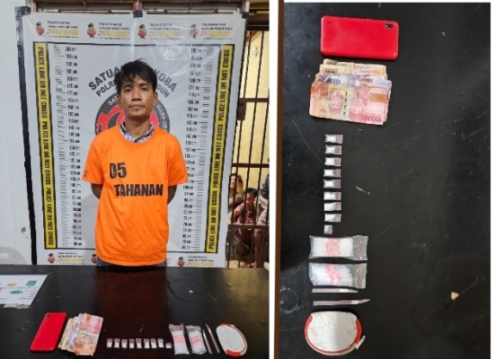 Dari hasil penggeledahan yang dilakukan secara menyeluruh, petugas menemukan barang bukti narkotika jenis sabu yang disimpan tersangka di kantong baju sebelah kiri dalam sebuah dompet kecil. Temuan ini menjadi bukti kuat keterlibatan tersangka dalam peredaran narkoba.