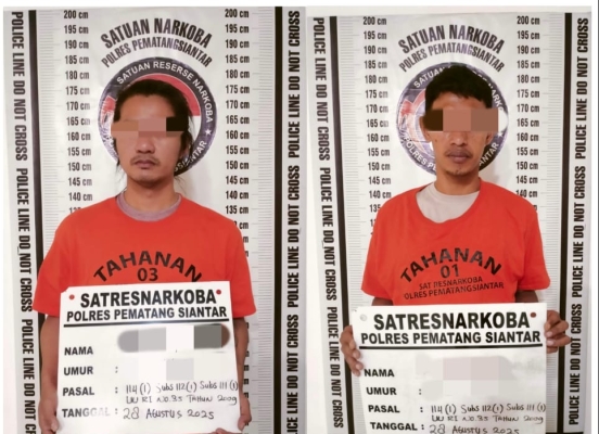 Gabungan tim Opsnal Sat Res Narkoba Polres Kota Pematangsiantar bersama Unit Intel Kodim 0207/Simalungun berhasil menangkap dua pria berinisial MDA (33) dan RF (35), di Jalan Rakutta Sembiring, Gang Pulo Gumba, Kelurahan Nagapita, Kecamatan Siantar Martoba, Kota Pematangsiantar, Sumatera Utara (Sumut), Kamis (28/08/2025).