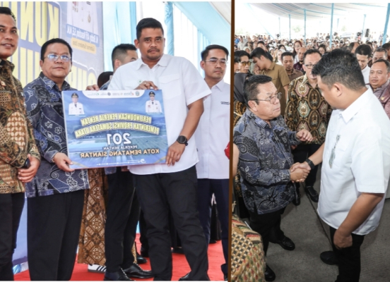 Gubernur Sumatera Utara (Sumut) Muhammad Bobby Afif Nasution SE MM menyerahkan kartu BPJS Ketenagakerjaan kepada pekerja rentan di Kawasan Ekonomi Khusus (KEK) Sei Mangkei, Nagori Sei Mangkei Kecamatan Bosar Maligas Kabupaten Simalungun, Kamis (9/10/2025). Penyerahan kartu BPJS Ketenagakerjaan ini diterima secara simbolis oleh Wali Kota Pematangsiantar Wesly Silalahi SH MKn, Wakil Bupati Simalungun Benny Gusman Sinaga ST, dan Wakil Bupati Batubara Syafrizal SE MAP.