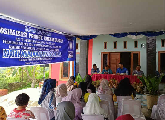 Anggota DPRD Kota Pematangsiantar, Aprial Muhammad Rizaldi Ginting, Menggelar kegiatan Sosialisasi Produk Hukum Daerah Kota Pematangsiantar Tahun 2025 dengan tema “Peraturan Daerah Nomor 1 Tahun 2021 tentang Pelestarian dan Pengelolaan Cagar Budaya” digelar di Kelurahan Setia Negara, Kecamatan Siantar Sitalasari, pada Jumat sore (17/10/2025).