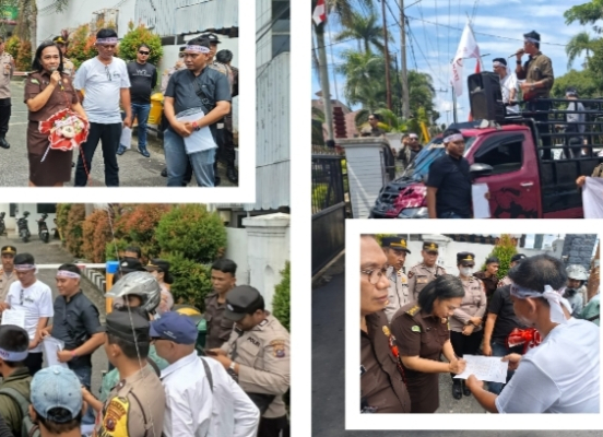 Puluhan massa yang tergabung dalam Barisan Rakyat Hancurkan Tindakan Ilegal (BARA HATI) menggelar aksi unjuk rasa damai di Kota Pematangsiantar, Senin (3/11/2025). Aksi dimulai dari Kantor Wali Kota, lalu berlanjut ke Kejaksaan Negeri dan Pengadilan Negeri Pematangsiantar.