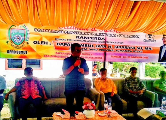 Jhony Sidabutar menyampaikan Ranperda Sosialisasi Peraturan Perundang Undangan tentang perlindungan Jaminan Sosial Pekerja Rentan katakan, kami menyampaikan mengenai Raperda Jaminan sosial pekerja rentan kepada warga Tangga Batu. Dimana disini banyak pekerja yang rentan yaitu petani, tukang bangunan, sopir dan lain lainnya sehingga anggota DPRD Provinsi membuat peraturan kepada Pemerintah Provinsi agar apabila ada kegiatan musibah atau kecelakaan kerja bisa ditanggung Pemerintah dalam perobatan.(***)